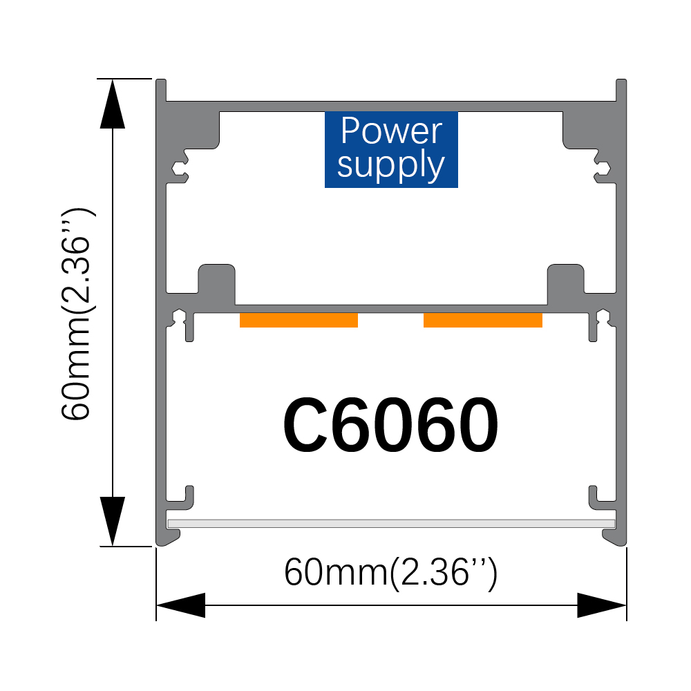 W60mm×H60mm C6060 LED Curved Linear Light, LED Arc-shaped Linear Light Φ600mm Φ900mm Φ1200mm